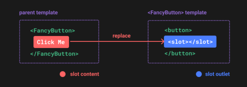 slot을 사용해서, <FancyButton>은 더 유연하고 재사용가능하다. 같은 고급스러운 스타일링을 적용하면서 다른 내용을 다른 장소에서 사용할 수 있다.
