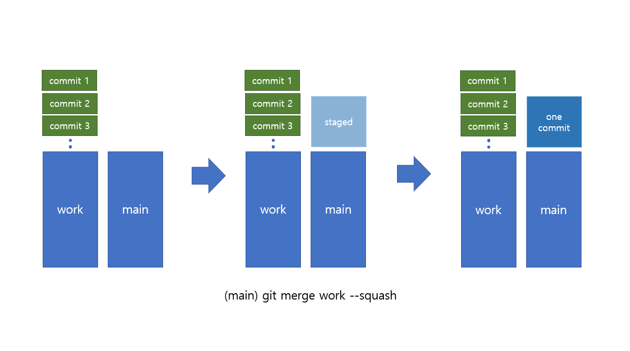 - git merge <branch> --squash : 커밋을 다 합쳐서 얹기