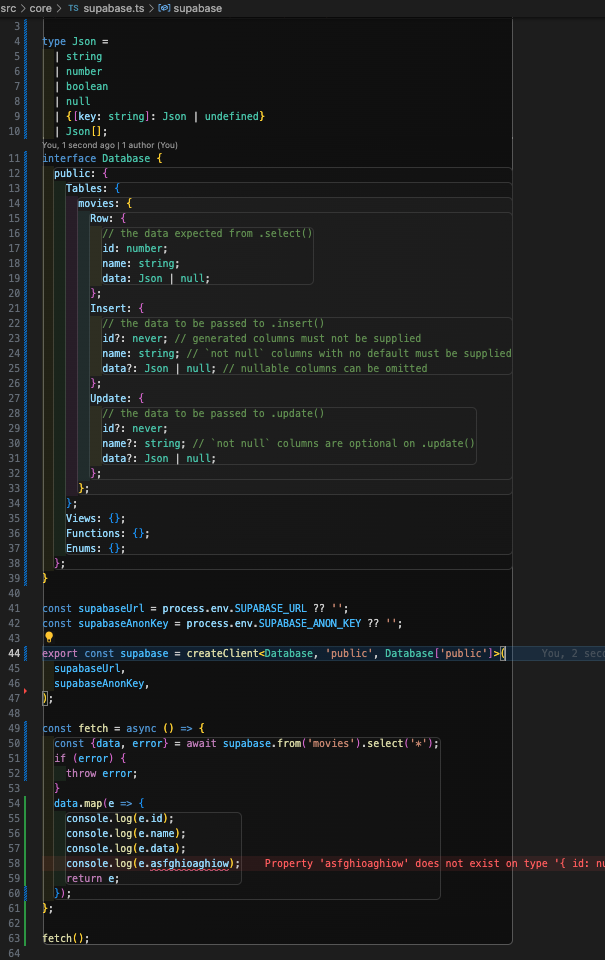 Sometimes the generated types are not what you expect. For example, a view's column may show up as nullable when you expect it to be not null. Using type-fest, you can override the types like so:
